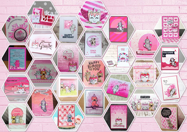 And the best thing about it is, that you can join in with the fun! ;o) How? That's easy: Hop to our blog and link up your pink birthday card for Birka. We have 11 generous sponsors who are giving away awesome prizes and you can also win a very exclusive cling stamp set with hand-drawn images by some of our drawing-talented Happy Crafty Friends ;o) But have a look yourself: click!